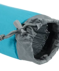 Auf dem Nylon-Außenmaterial befinden sich Gurtschlaufen, wodurch du die Hülle am Rucksack befestigen oder mit einem Karabiner sichern kannst. Damit die Flasche nicht herausfällt, kann der obere Teil mit einem Schnürzug zugezogen werden.