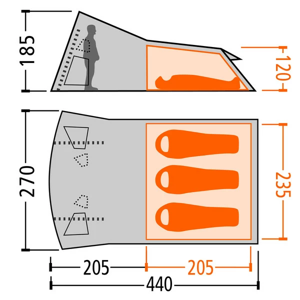 - Fest eingenähter Zeltboden über die gesamte Grundfläche