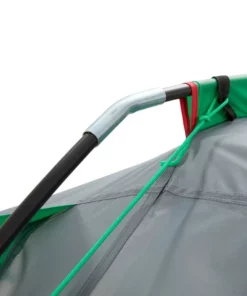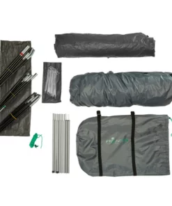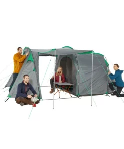 Das preiswerte Familienzelt lässt sich durch markierte Stangen und Gestängekanäle problemlos aufbauen. Trotz der Größe gelingt der Aufbau mit zwei Personen schnell. Das Innenzelt kann beim Aufbau im Außenzelt verbleiben. So wird es auch bei Regen nicht nass.
