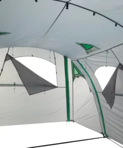 Das Innenzelt bietet ein großes Raumangebot für vier Personen und verfügt über insgesamt vier Netzseitentaschen in denen Brillen, Bücher, Lampe und andere Kleinigkeiten ihren Platz finden. Eine Stoffbahn separiert das Innenzelt, wodurch zwei mal zwei Schlafplätze entstehen. Der Stoff kann bei Nichtgebrauch nach oben gerollt und fixiert werden. Ein großer Lüfter mit Moskitonetz sorgt für ausreichend Belüftung im Innenzelt.
