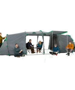Werden beide Innenzelte ausgehängt, kann das verbleibende Überzelt als Zelt für z.B. Gartenpartys dienen. Vier Eingänge, die teilweise auch hochgestellt werden können, bieten nicht nur eine gute Aussicht, sondern mit den acht weiteren Lüftern auch eine optimale Raumbelüftung. Die Fenster stellen jedoch auch bei geschlossenen Eingängen eine gute Sicht nach draußen bereit.