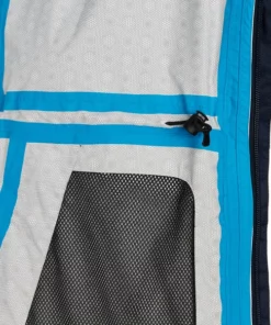 - Kapuze mit Schirm, Volumenregulierung hinten (mit Klettverschluss) und elastischen Einsätzen an den Seiten