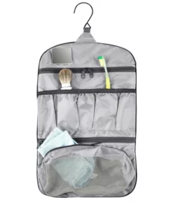 Der Dauerbrenner unter den Kulturbeuteln: Die Waschtasche zum Wickeln. Flach verstaubar und dank praktischem Haken überall schnell aufgehangen.