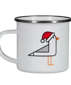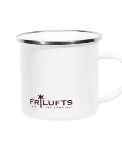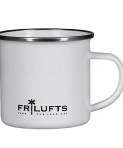 Lackierter Emaille-Becher mit Frilufts Print und Edelstahlrand. Gut geeignet für den morgendlichen Kaffee am Lagerfeuer. Der Becher fasst 350 ml und misst 8 x 9 cm (HxB).