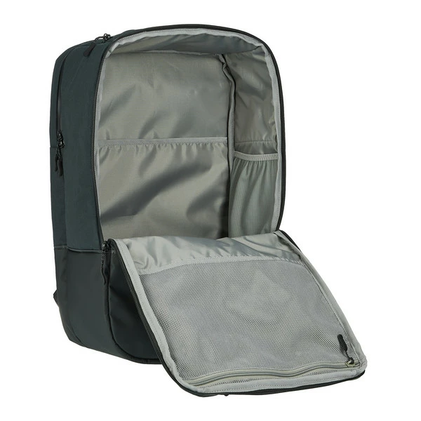 Der Lakasund CW lässt sich sehr weit aufklappen. Dadurch erreichst du auch die hinterste Ecke problemlos. Damit du deine Sachen schnell findest, ist das Futter hell gehalten. Das aufklappbare Hauptfach hat im Deckel ein RV-Netzfach und seitlich je ein elastisches Steckfach. Hier kannst du deine Thermokanne und die Wasserflasche kippsicher im Inneren des Rucksacks unterbringen. Das separat zugängliche Laptopfach hat ein geräumiges Netzfach für Kabel, Maus und die Festplatte und besitzt ein zusätzliches Steckfach für Dokumente. Ein fleecegefüttertes Kopffach schützt dein Smartphone oder deine Sonnenbrille vor Kratzern.