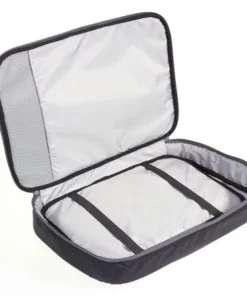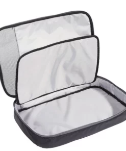 Der leichtgewichtige Packbeutel ist rundum gepolstert und hat ein kleines Sichtfenster aus Mesh. Er lässt sich mittels umlaufendem 2-Wege-Reißverschluss wie ein Buch aufklappen. Eine hochklappbare Trennwand mit 2 Gummibänder ermöglicht es dir, den Inhalt bei Bedarf zu sortieren und fixieren.