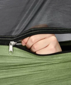 Der Einstieg in die Hängematte erfolgt über einen seitlich angebrachten Reißverschluss, an den anderen drei Seiten ist das Netz fest vernäht. Aufgespannt wird es mit einem Extraseil (inkl.). Praktisch: Der Mosquito Hammock kann schnell im angenähten Packbeutel verstaut werden und so platzsparend in deinem Rucksack mitgeführt werden.