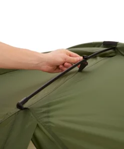 - Außenzelt und Innenzelt werden durch außenliegendes Gestänge gleichzeitig aufgebaut