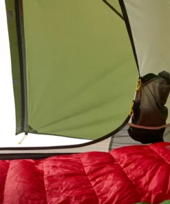 Die beiden Apsiden bieten ausreichend Platz für eure Rucksäcke und anderes Equipment. Sie ist durch die Querstange weit aufgespannt. Durch die zwei Eingänge und Apsiden kannst du die Ausrüstung separat organisieren und das Zelt jederzeit zur wetterabgewandten Seite verlassen. Die Eingänge können zur Hälfte oder komplett geöffnet werden, was dir aus dem Zelt heraus einen schönen Panoramablick in die Landschaft ermöglicht.