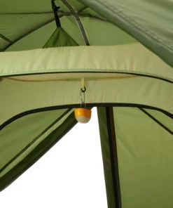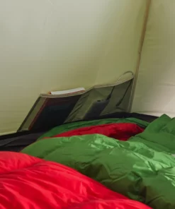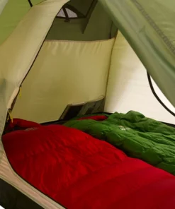 Das Innenzelt ist für zwei Personen großzügig geschnitten. Mit einer Höhe von 105 cm kannst du bequem sitzen und auch das Anziehen am Morgen ist ohne große Verrenkungen möglich. In den vier Seitentaschen lassen sich Bücher, Stirnlampe, Mobiltelefon u. Ä. griffbereit aufbewahren. Der Innenzelteingang ist mit einem Moskitonetz ausgestattet und kann bei Bedarf mit Stoff verschlossen werden. Damit du nicht jedes Mal den Eingang aufrollen musst, befinden sich zwei zusätzliche Netztaschen neben der Tür, in der sich die Türen unkompliziert verstauen lassen.
