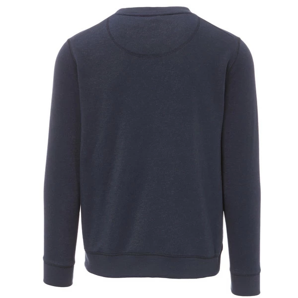 Das Sweatshirt besteht aus einem schnelltrocknenden Baumwoll-Polyester-Gemisch und hat einen angenehm weichen, natürlichen Materialgriff. Die Innenseite ist aufgebürstet und liegt dadurch kuschelig weich auf der Haut. Durch die breiten, elastischen Bündchen an den Ärmel und am Saum und durch den legeren Schnitt sitzt der Pullover immer äußerst bequem, ob am Lagerfeuer oder zu Hause auf der Couch.