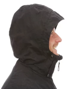 Die gefütterte Kapuze lässt sich per elastischem Gummizug ganz fest zuziehen und schirmt unangenehme Zugluft zuverlässig ab. Und auch eine zusätzliche Isolationsschicht z.B. in Form einer Fleecejacke, findet unter der Jacke ausreichend Platz.