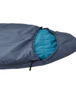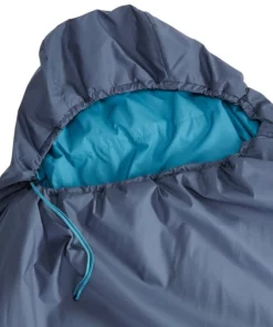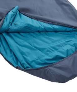 Die Kapuze ist weit geschnitten. Du kannst sie bei Bedarf mit einem Kordelzug zuziehen. Der lange 2-Wege-Reißverschluss ist mit einer Schutzleiste versehen, der ein Verklemmen des RVs im Futter verhindern soll. Gleichzeitig dient die Schutzleiste als Reißverschluss-Abdeckleiste, um keine Kältebrücken entstehen zu lassen. Wird es doch einmal zu warm, kannst du den Schlafsack weit öffnen und aufklappen.
