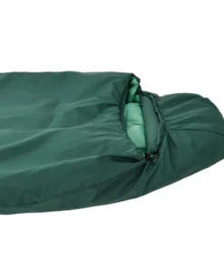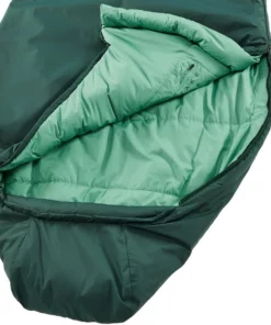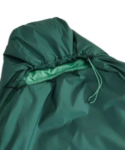 Die Kapuze kannst du bei Bedarf mit einem Kordelzug zuziehen. Der lange 2-Wege-Reißverschluss ist mit einer Schutzleiste versehen, der ein Verklemmen des RVs im Futter verhindern soll. Gleichzeitig dient die Schutzleiste als Reißverschluss-Abdeckleiste, um keine Kältebrücken entstehen zu lassen. Wird es doch einmal zu warm, kannst du den Schlafsack weit öffnen und aufklappen.