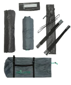 - Benötigt min. 4 und max. 14 Heringe zum Aufbau