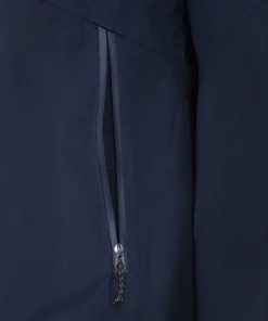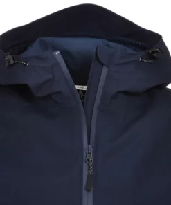 Das robuste Außenmaterial hat einen kräftigen, aber dennoch angenehm weichen Griff. Dadurch fühlt sich die Jacke eher wie eine komfortable Übergangsjacke an als eine Regenjacke. Und dennoch: Das Material ist dank seiner PU-Beschichtung zuverlässig wind- und wasserdicht. Die PFC-freie Imprägnierung verhindert währenddessen, dass Nässe überhaupt erst in das Material eindringen kann.