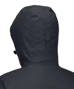 - Kapuze mit Schirm und Volumenregulierung vorne (mit Schnürzug) und hinten (mit Klettverschluss)