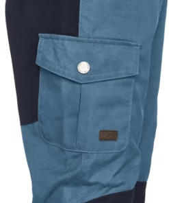 Die Hose besteht aus einem sehr strapazierfähigen Gemisch aus weicher Baumwolle und schnelltrocknendem Polyester. Das Material bietet durch seine dichte Webart einen natürlichen Schutz vor Mücken und anderen lästigen Blutsaugern. Zudem ist es gewachst, wodurch die Hose wind- und wasserabweisend ist. Dieser Effekt kann von Zeit zu Zeit mit Greenland Wax (siehe Zubehör) aufgefrischt werden. So kann unbeschwert durch nasses Gras getobt werden und auch ein kleiner Regenschauer ist für die Hose kein Problem.